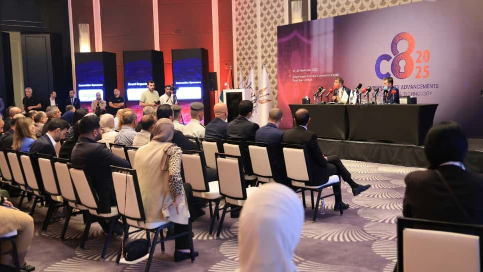 وأضاف أن مؤتمر C8 هذا العام يُعقد بمشاركة ما يقارب 5000 حاضر من أكثر من 50 دولة حول العالم، وبمشاركة أكثر من 40 متحدثاً دولياً ومحلياً، ما يعكس مكانة المؤتمر كمنصة عالمية للحوار وتبادل الخبرات في مجال الأمن السيبراني. مشيراً إلى أن انعقاد المؤتمر يأتي في مرحلة يشهد فيها العالم تسارعاً غير مسبوق في الابتكار الرقمي والتطور التكنولوجي، وما يصاحبه من تحديات متزايدة في الفضاء السيبراني، مما يبرز دور الأردن كمركز إقليمي فاعل يسعى إلى تعزيز بيئة سيبرانية آمنة، وبناء شراكات مستدامة مع مختلف الجهات المحلية والإقليمية والدولية.